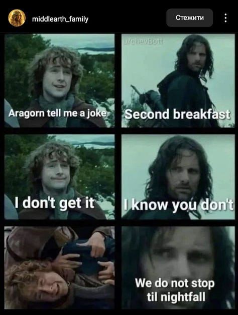 цього разу ще й з мого улюбленого Володаря Перснів добрий шмат мемів вийшов, тішуся